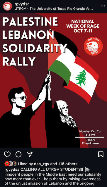 UTRGV's DSA chapter to hold "week of rage" in commemoration of Hamas slaughter in Israel. The "rage," however, will be directed at the victims, as opposed to the perpetrators.